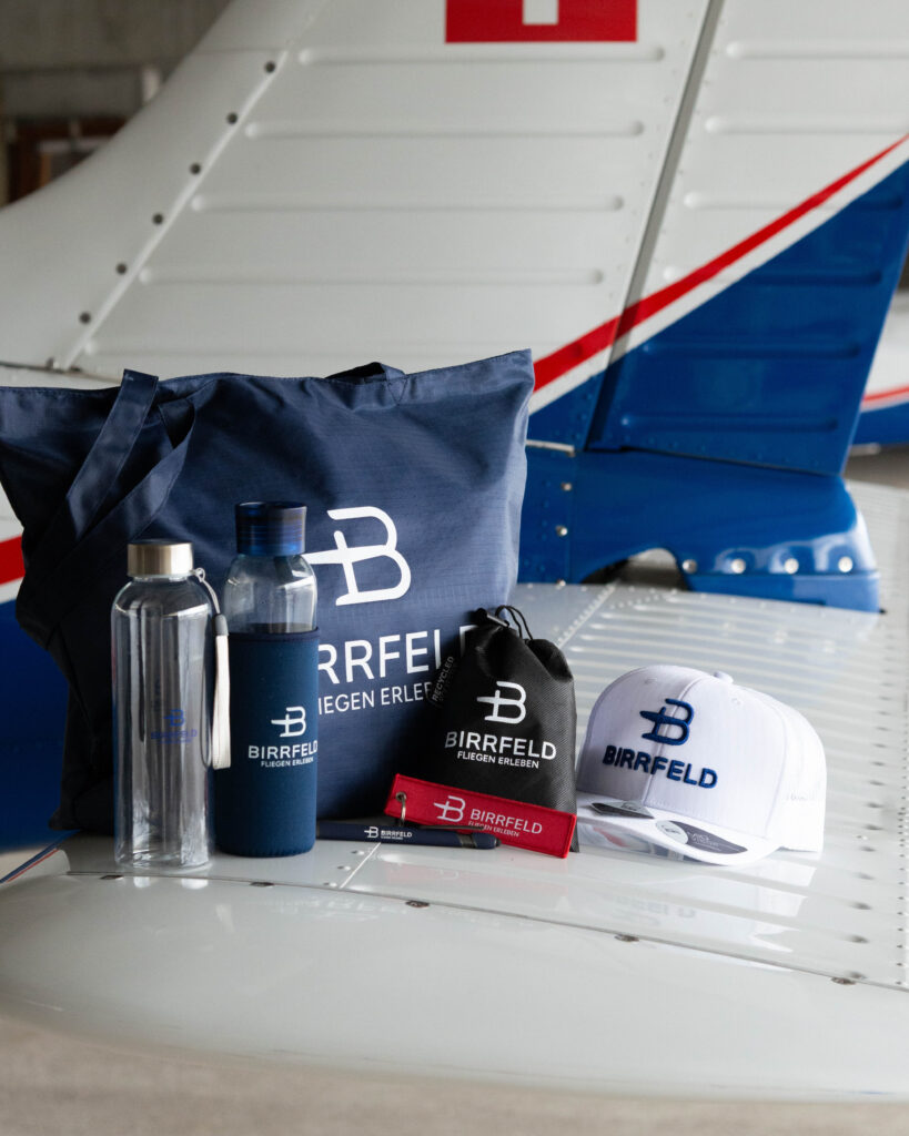 Ob im Cockpit, auf dem Flugplatz oder im Alltag – die Birrfeld-Kollektion bringt ein Stück Aviatik überall hin mit. Die Auswahl reicht von praktischen Accessoires bis zu stilvollen Begleitern wie Truckercaps, Taschen, Stiften, Wasserflaschen, Schlüsselanhängern und weiteren beliebten Artikeln. Alle Produkte sind im typischen Birrfeld-Look gestaltet und vereinen Funktionalität mit der Leidenschaft fürs Fliegen.